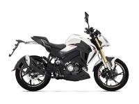 Keeway RKF 125cc is a hyper-naked motorcycle that boasts a modern and unique personality. Its bold and eye-catching look is sure to turn heads, while its excellent performance and sporty revving make it a pleasure to ride, especially in curves. Equipped with a new generation 125cc engine in collaboration with Benelli, this single-cylinder 4 Valve Multi Spark four-stroke liquid-cooled engine delivers 12 BHP and features three spark plugs for increased efficiency and performance. The engine is water-cooled and uses electronic injection for optimal performance. The RKF 125 also comes with a range of features to enhance the rider’s experience, including upside down front forks and a rear mono-shock for a smooth and comfortable ride. The front and rear disc brakes provide excellent stopping power, while the digital display offers all the information you need, including speed, RPM, temperature, gear engaged, fuel gauge, and daily trip. The modern look of the RKF 125 is further enhanced by its LED headlights, which provide perfect lighting for enhanced visibility and road safety. The motorcycle also features a powerful 260mm brake disc combined with CBS braking, ensuring perfect braking in all conditions. Available in a range of colours and with a retro look, the Keeway RKF 125cc is a stylish and reliable motorcycle that is perfect for all budding bikers. To learn more about this naked sports geared 125cc learner legal motorcycle, check out our reviews and blogs or schedule a demo test ride today. You can also buy online and take advantage of our delivery service.