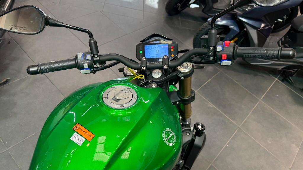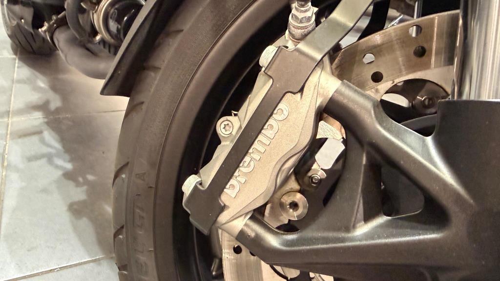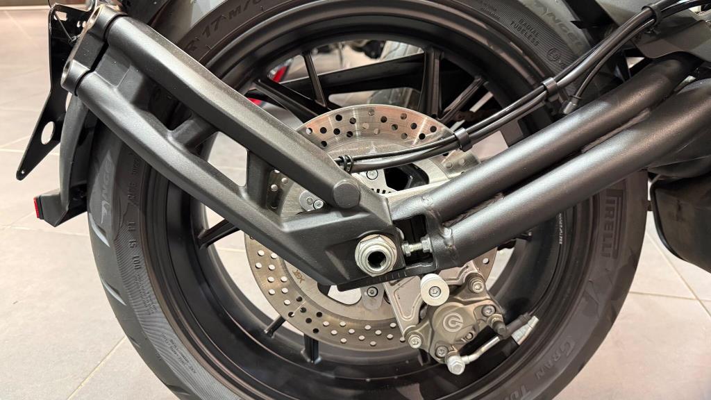 The suspensions consist in a front upside-down fork with 50 mm diameter legs, effectiveness throughout the entire 125 mm travel of the front suspension. On the back there is a swinging arm with central adjustable mono shock in the spring preload with a 55 mm travel. The attention to safety and performance is confirmed by the use of the Brembo braking system, with a double 320 mm diameter semi-floating disc on the front and four-piston calliper, and a 260 mm diameter disc on the back with double piston floating calliper. The 17″ aluminium alloy rims mount 120/70-17 and 180/55-17 Pirelli Angel GT tyres. The tank has 14.5 litres of capacity The TFT display offers two modes, with automatic change day/night mode, for a perfect reading of the information in all conditions, while the headlight, with its modern and dynamic design, is full-LED – as is all the lighting.