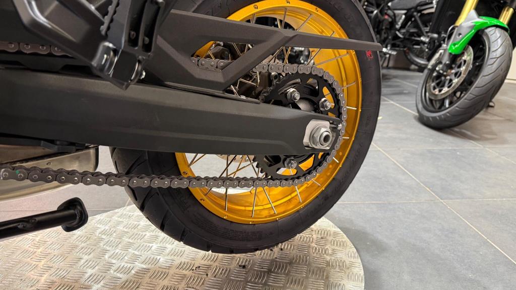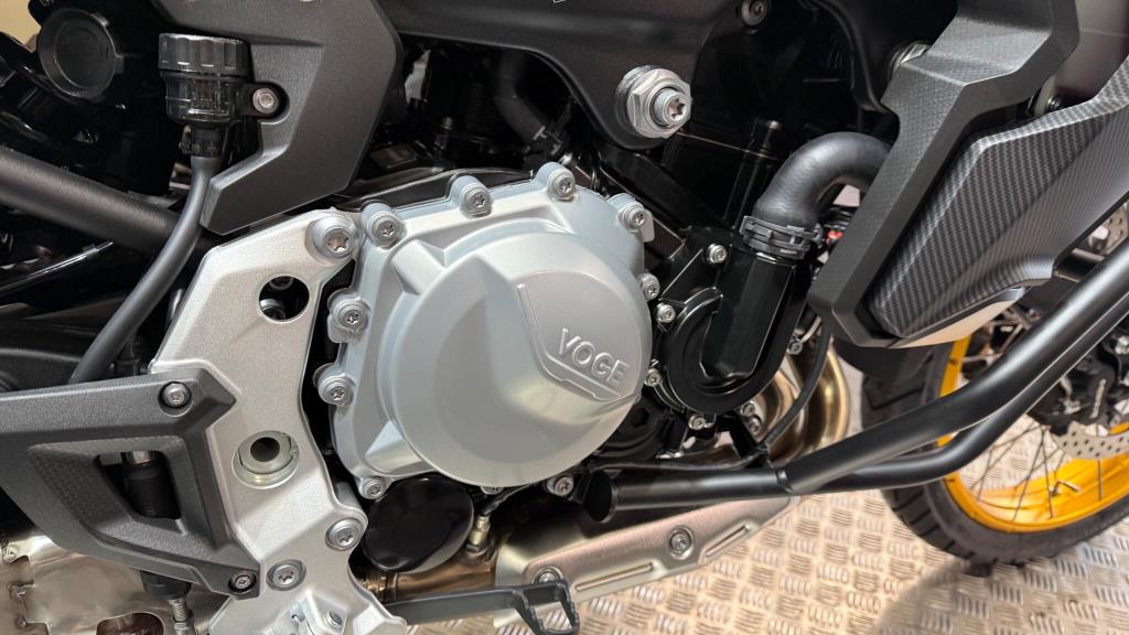 The premium chassis of the VOGE DS900X is composed of a perimeter steel frame and an asymmetrical aluminium swingarm. The long-travel suspension, adjustable KYB upside-down fork at the front with adjustable KYB mono-shock at the rear, allow for comfort and performance whether on or off-road. The addition of a steering damper ensures stable, confident riding even at higher speeds. The 21” spoked front wheel and 17” spoked rear are dressed in tubeless Pirelli Scorpion Trail II tyres that are perfectly suited to an Enduro style motorcycle with a road touring setup. These tyres are sporty but durable enough for long road trips, and capable of small off-road excursions when required. Formidable stopping power is provided by twin Brembo callipers with 305mm discs up-front, and a single Brembo calliper with 265mm disc at the rear. The braking system is further enhanced by Bosch 6-axis cornering ABS that can be switched off for trail riding.