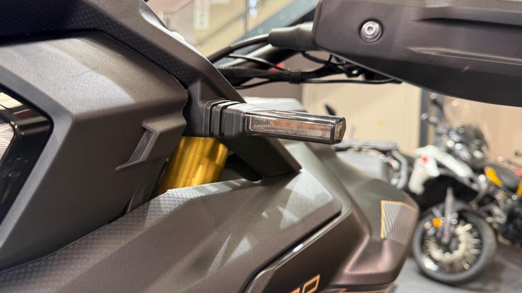 The DS900X is laden with technology: Keyless Go enables you to start the bike with your key fob safely tucked away in your pocket, benefitting both security and convenience. Blind spot assistance RADAR illuminates warning LED’s in your mirrors when it detects vehicles nearby. This is especially useful in busy urban areas or when changing lanes. The large 7″ full colour TFT display with mobile connectivity is clear and provides all the usual information as well as several advanced features like tyre pressure monitoring. You can effortlessly scroll through menus to adjust different features on the bike. A front facing dash cam is fitted as standard just above the headlight. Dash cam footage can be viewed to watch back your ride, and is increasingly valuable in the case of any non-fault insurance claims too.